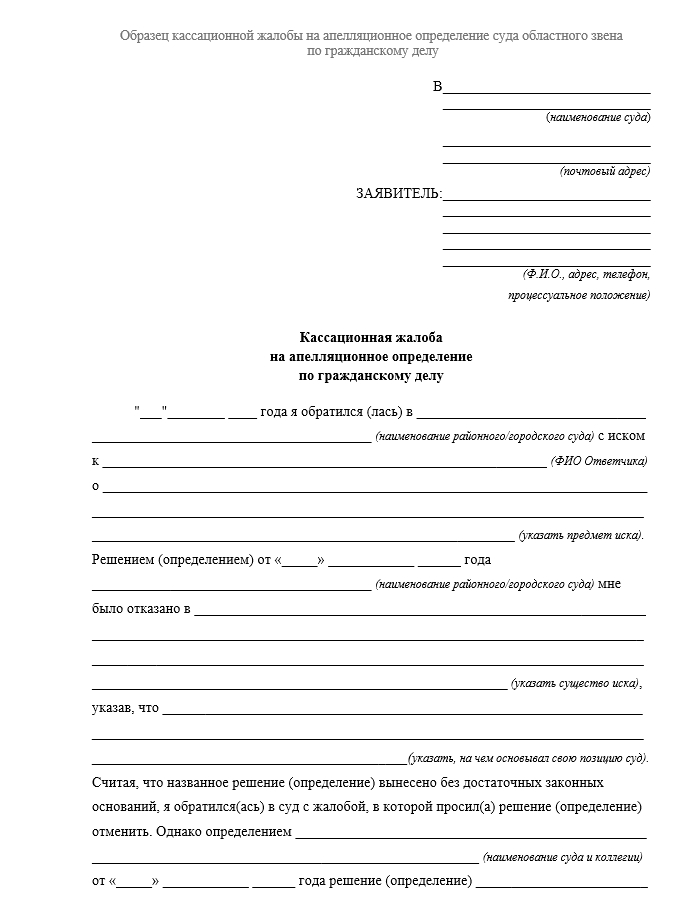 Образец кассационной жалобы