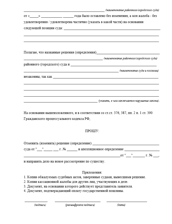 Как правильно составить кассационную жалобу