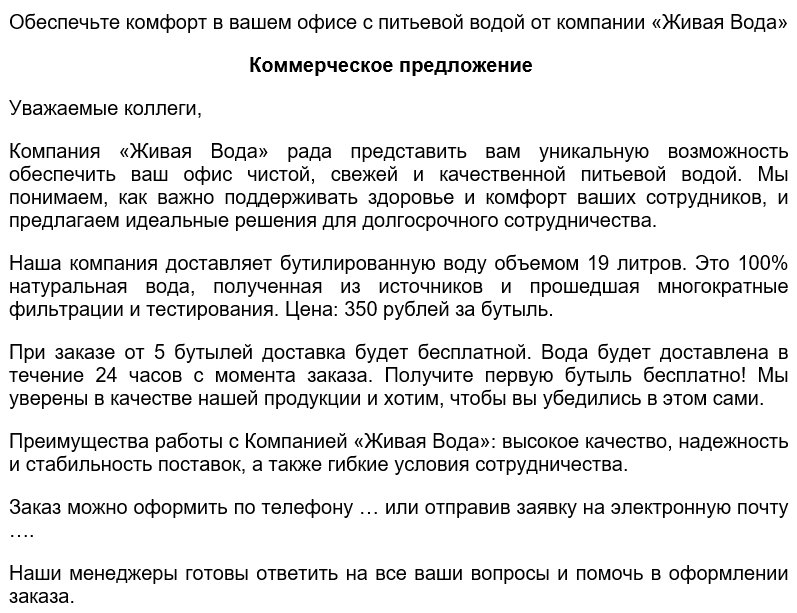 Образец коммерческого предложения