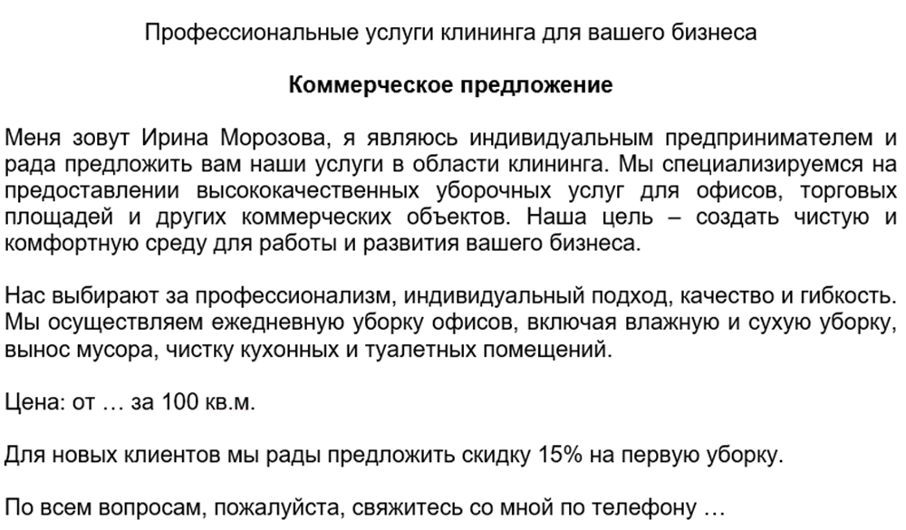 Образец коммерческого предложения от самозанятого